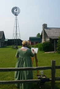 July 3-6 Starting this Wednesday, July 3rd and running through Saturday evening, the 6th I will be camped and in period costume at the farm museum site on Washington island, Wisconsin. This is a more informal setting where I will be found talking about life as a frontier woman artist and creating water color sketches, or oil sketches since I will have my plein aire kit with me as well.