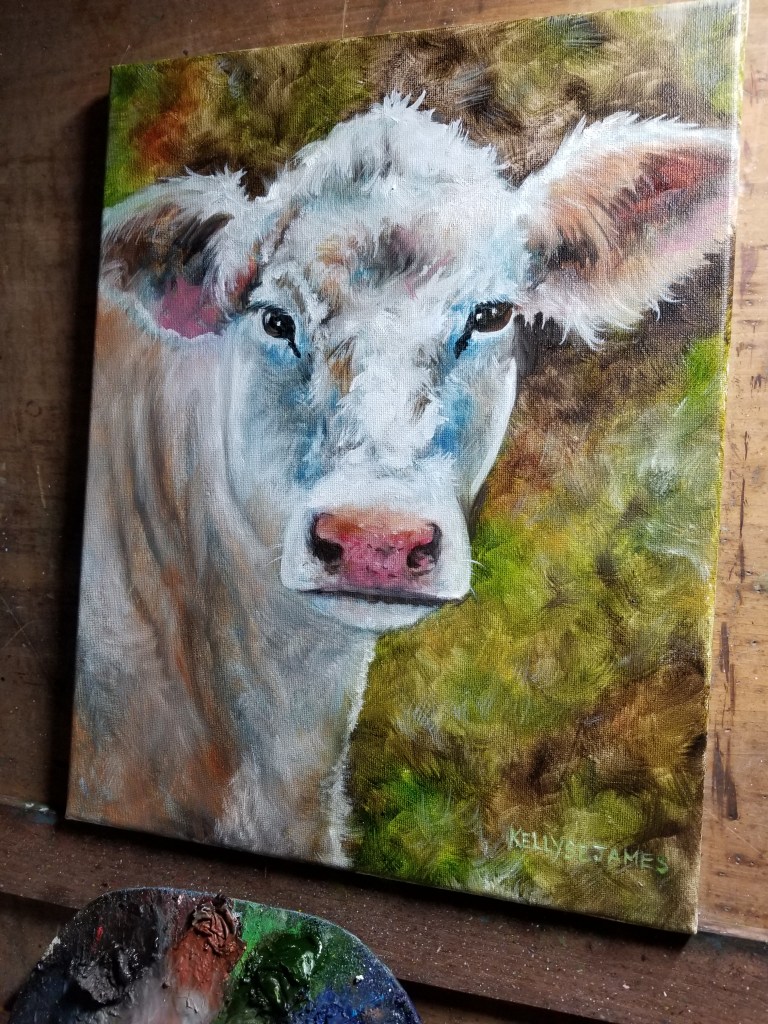 So what I painted last night is simply a portrait of a cow. There is no cloaked message, no statement, and no internal angst being processed. It is a step towards my inner peace. It is me calming down and hitting a reset button. It is an exercise in pushing paint around. It is play. It is art. It is honoring the other part of Kelly that sees joy and beauty in absolutely everything. That is the person that I need to feed and nurture and protect because that is the person who will persevere.