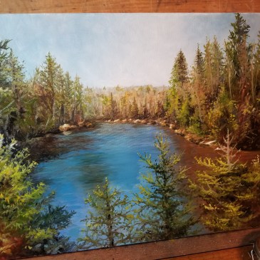 I sat down at the easel yesterday and struggled to find a photo that I wanted to paint. This ‘tired to the core’ feeling is a hard one to stare down, but I felt calmer when I started to look through my phone photos. I do look forward to the day when I can go out and breathe fresh air and see the abundant loveliness in nature but scrolling these I recalled moments that Ray and I just pulled the van over beside a lovely meandering river and felt the peace that this brought. Many of these photos had nothing dramatic about them such as a colorful sunset, rock formation, waterfall or unique creature, but were just what they were, a snapshot of a peaceful moment in afternoon sun.