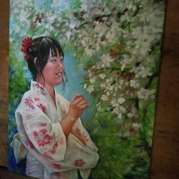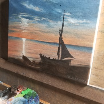 This painting is a 10″ x 20″ oil on canvas called, A Grateful Heart.