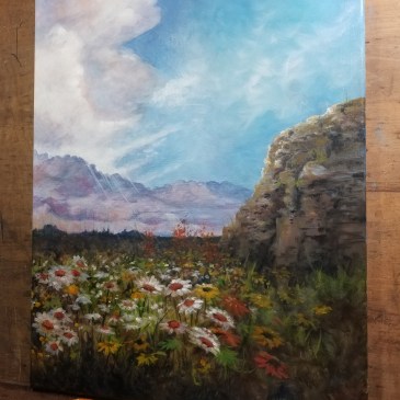 This morning’s painting is a 10″ by 20″ oil on canvas called, Spring Melt.