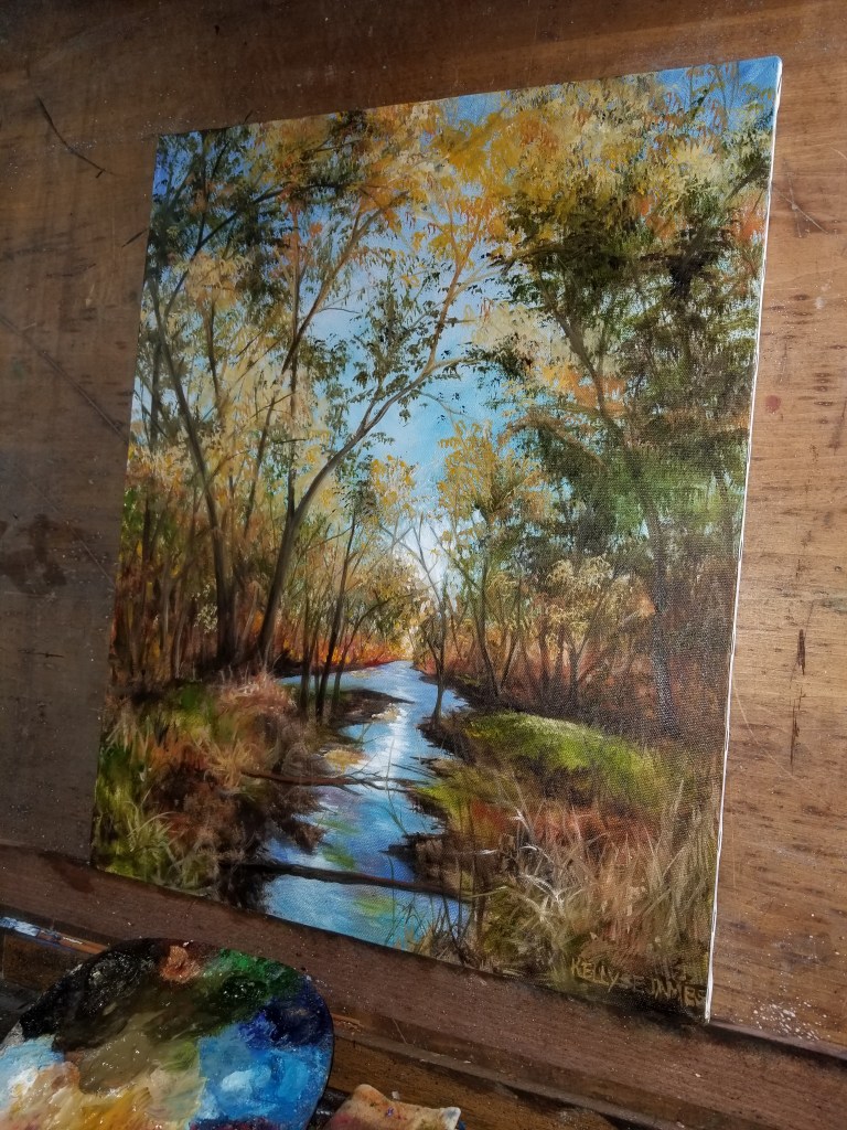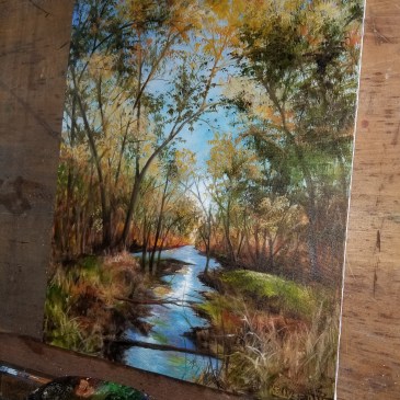 I share this image with its flaws and struggles much like the passing year as an excercise in pondering – a 16″ x 20″ oil on canvas entitled, Dawn in the Dark Wood.