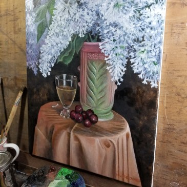 For your enjoyment, breath deeply and enjoy the remembered scent of “Lilacs” a 16″ x 20″ oil on canvas.
